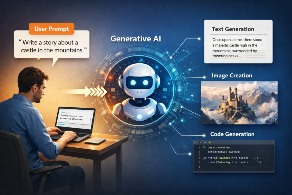 Think of Generative AI as a very smart assistant who can write, draw, or compose when you give instructions – but it still waits for you to tell it what to do.